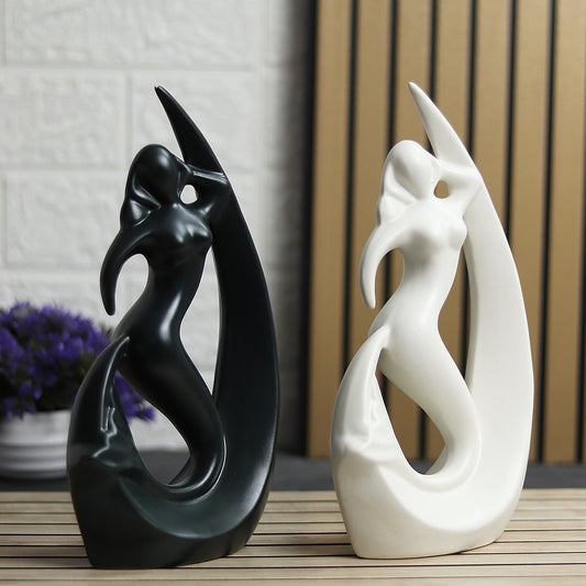 Black Ceramic Mermaid Statue - Elegant Home Decor Accent