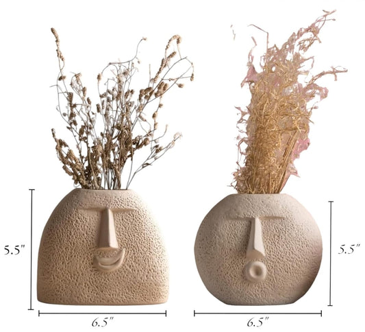 Artisanal Oval Face Ceramic Vase Set - Minimalist Abstract Design